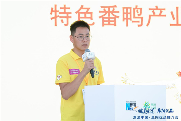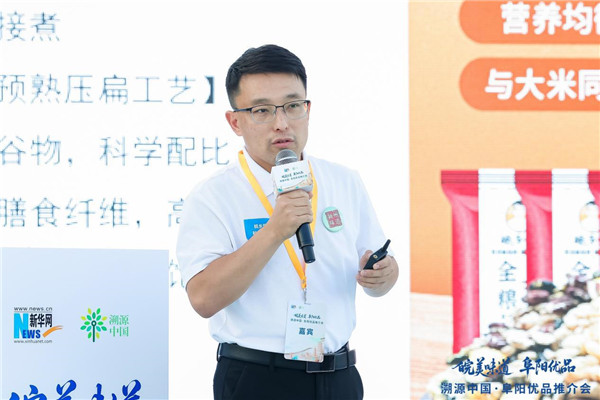 安徽皖乡领食品科技有限公司董事长冯伟,从颍州西湖的文化底蕴切入介绍产品。公司地处欧阳修和苏东坡喜爱的西湖之畔,秉持文化融入食品的理念。其全粮五谷饭免洗免泡,15分钟即食,富含多种营养,包装规格多样。香脆黑豆用绿心黑豆制作,零添加,富含营养,吃法多样。另有全粮馒头、药膳馒头,30多种口味豆浆粉等产品。冯伟还介绍了区政府打造的“颍州味道”区域公共品牌,涵盖丰富内容,诚邀大家到颍州西湖体验。