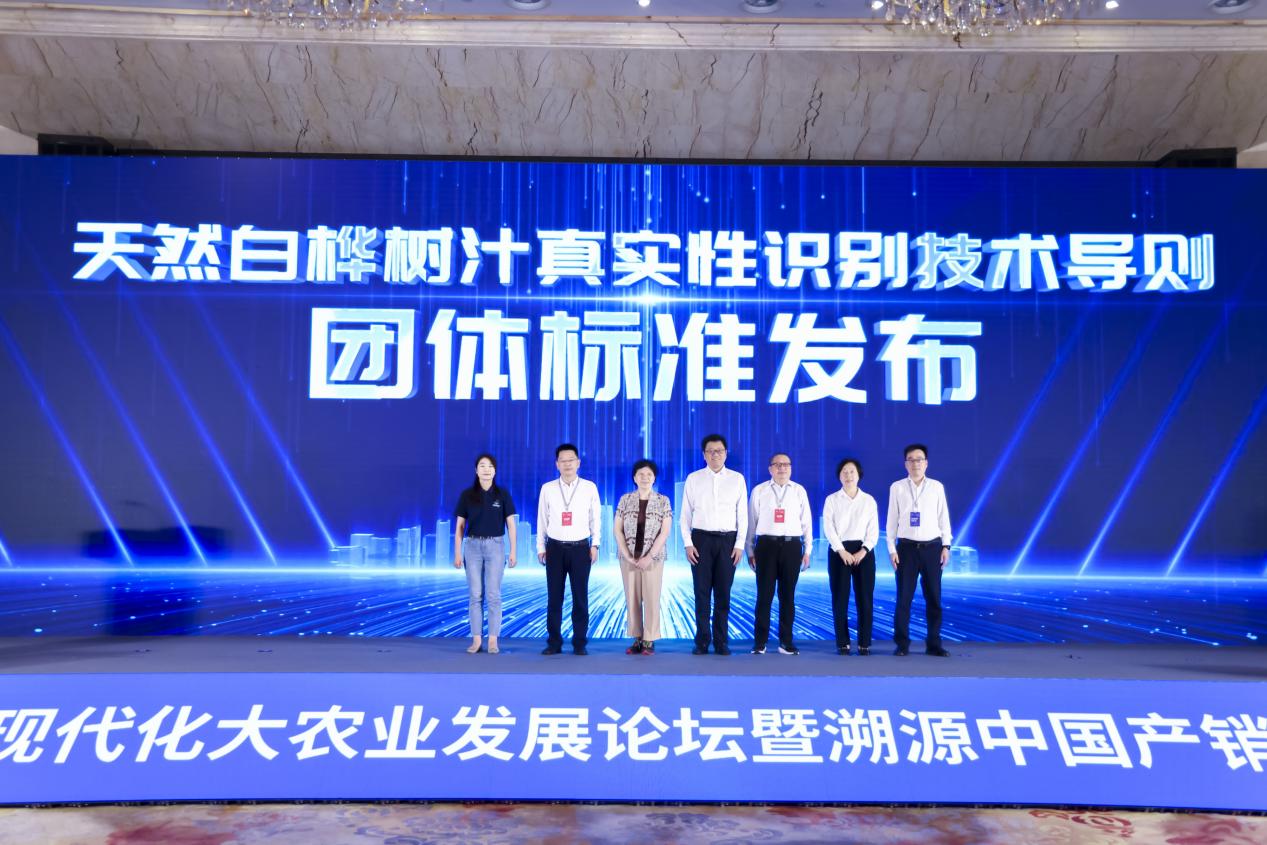 会上,由中国防伪行业协会立项、中轻技术创新中心有限公司牵头制定的《天然白桦树汁真实性识别技术导则》团体标准正式发布,张宏明作为牵头企业代表参与了团体标准的发布仪式。