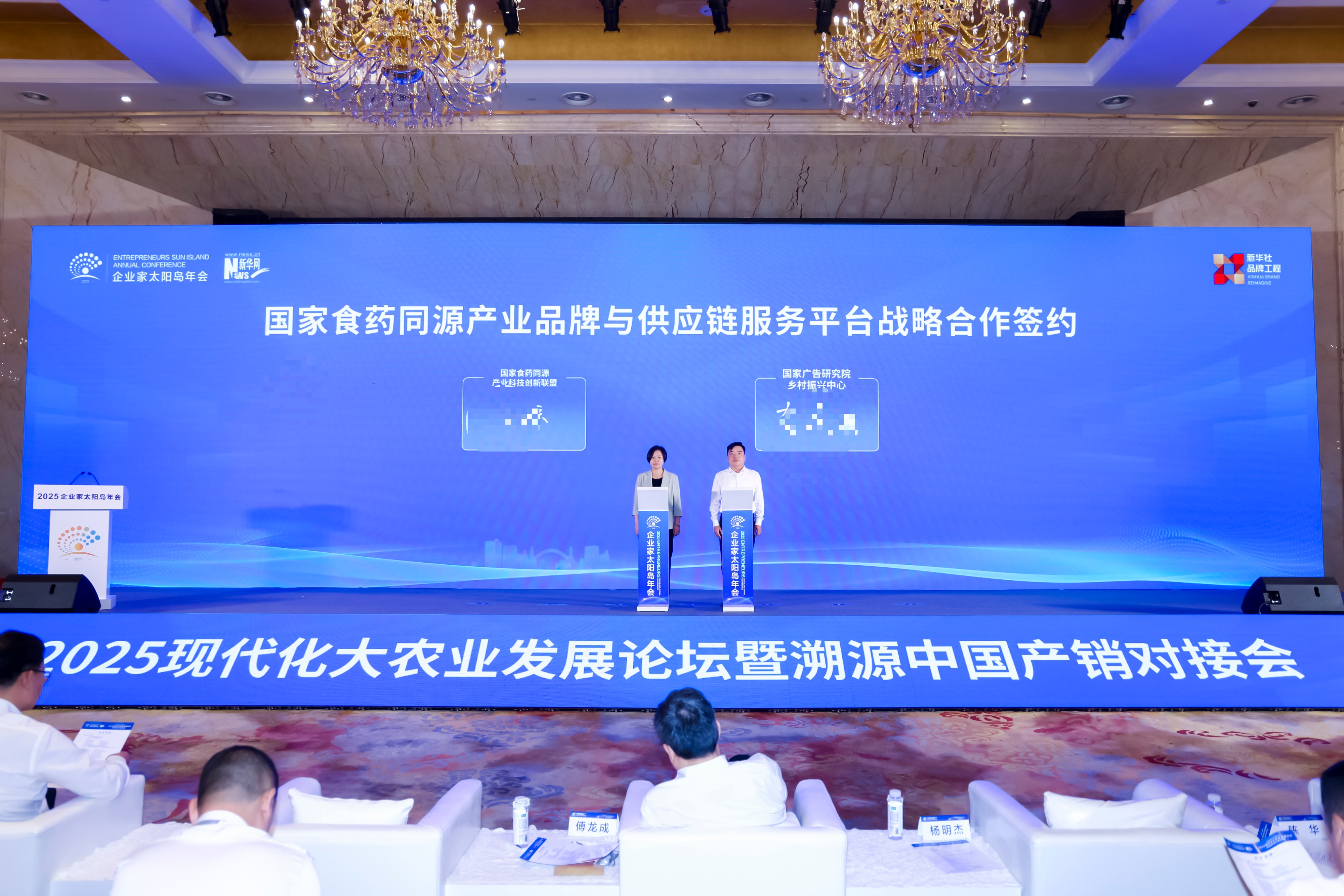 在产业合作签约仪式上,中国农业科学院农产品加工所研究员、国家食药同源产业科技创新联盟秘书长王琼与国家广告研究院品牌实验室、北京地标产发科技集团总裁李庆雨共同签署国家食药同源产业品牌与供应链服务平台合作协议,为食药同源大健康及未来食品产业发展注入新动力。