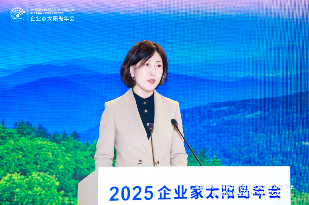 8月2日,2025太阳岛企业家年会“冰雪赋能发展 文旅创引未来”冰雪经济与特色文旅内涵式高质量发展论坛在哈尔滨举行。图为哈尔滨马迭尔文化旅游投资集团有限公司党委副书记、副总经理秦晓燕发表演讲