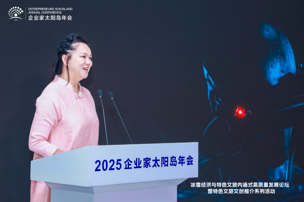 8月2日,2025太阳岛企业家年会“冰雪赋能发展 文旅创引未来”冰雪经济与特色文旅内涵式高质量发展论坛在哈尔滨举行。图为轩辕集团大项目中心总经理邢淑杰发表演讲