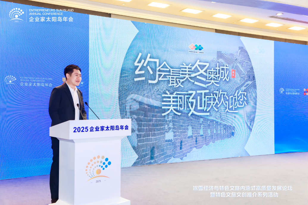 8月2日,2025太阳岛企业家年会“冰雪赋能发展 文旅创引未来”冰雪经济与特色文旅内涵式高质量发展论坛在哈尔滨举行。图为北京市延庆区文化和旅游局副局长鲍捷作延庆区文旅城市推介