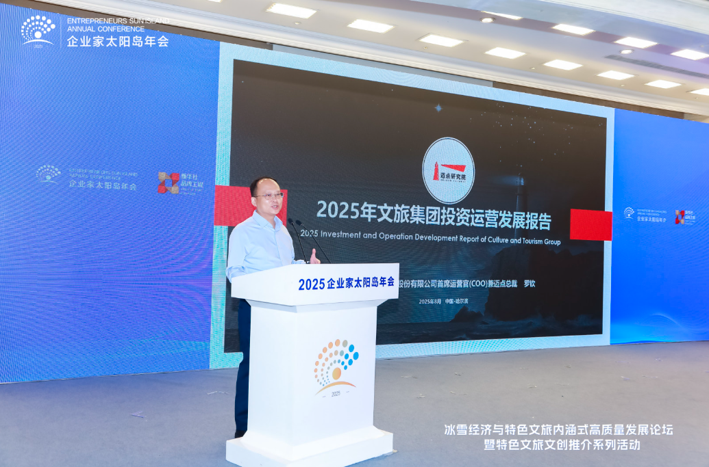 8月2日,2025太阳岛企业家年会“冰雪赋能发展 文旅创引未来”冰雪经济与特色文旅内涵式高质量发展论坛在哈尔滨举行。图为杭州东方网升科技股份有限公司COO罗钦演讲