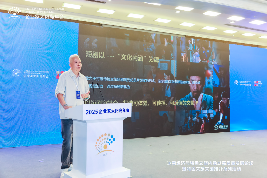 8月2日,2025太阳岛企业家年会“冰雪赋能发展 文旅创引未来”冰雪经济与特色文旅内涵式高质量发展论坛在哈尔滨举行。图为金樽盛誉推荐活动组委会项目负责人、中礼江苏文化产业有限公司董事长席光华作特色文旅推介