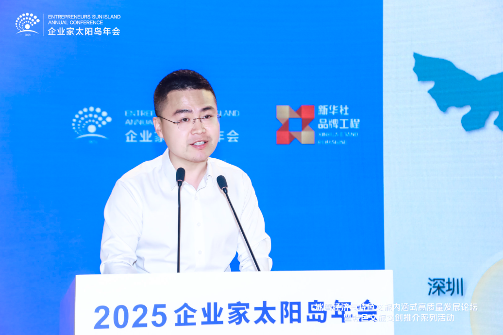 8月2日,2025太阳岛企业家年会“冰雪赋能发展 文旅创引未来”冰雪经济与特色文旅内涵式高质量发展论坛在哈尔滨举行。图为深圳(哈尔滨)产业园投资开发有限公司投资经营部部长汤振华发表演讲