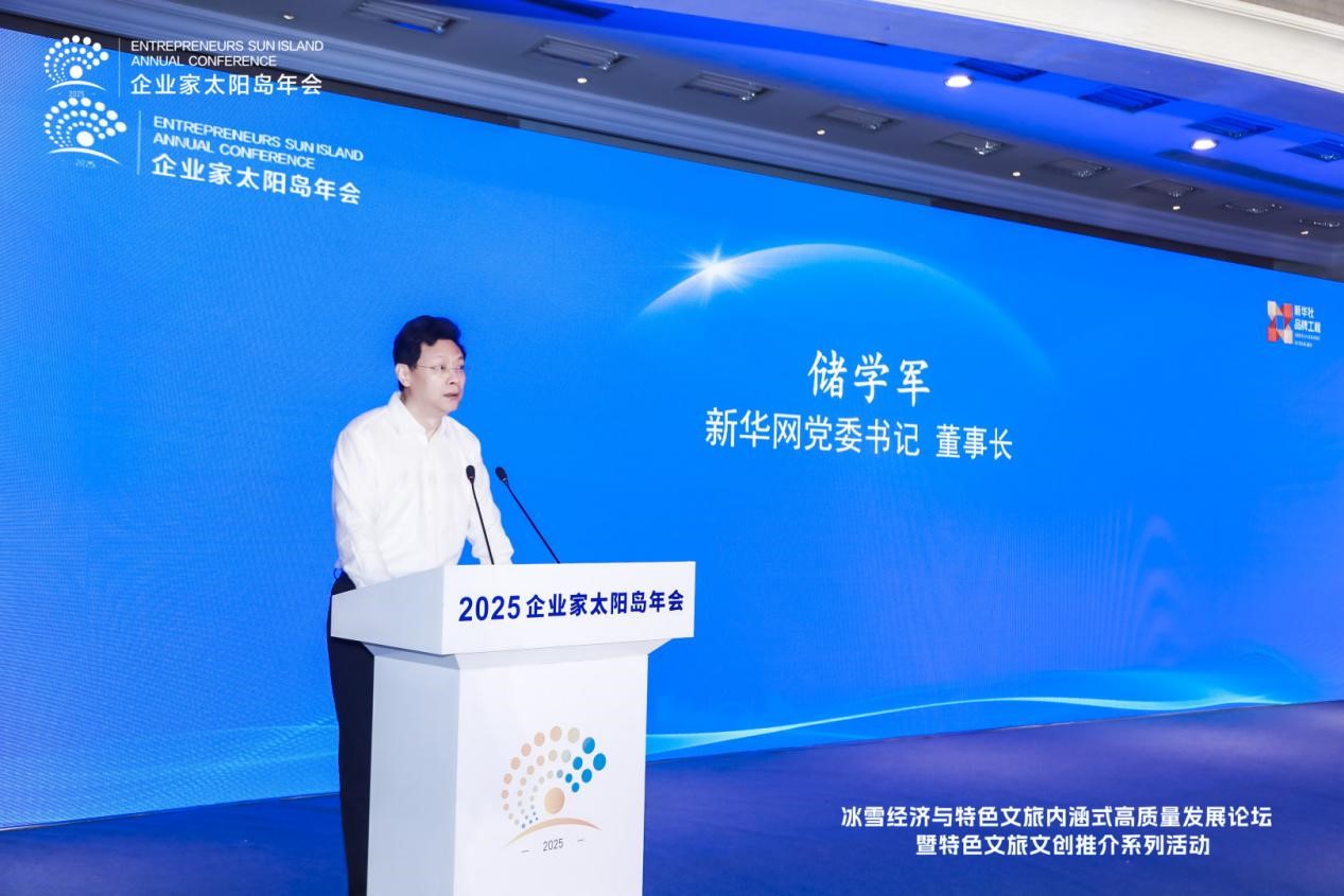 8月2日,2025太阳岛企业家年会“冰雪赋能发展 文旅创引未来”冰雪经济与特色文旅内涵式高质量发展论坛在哈尔滨举行。图为新华网党委书记、董事长储学军致辞