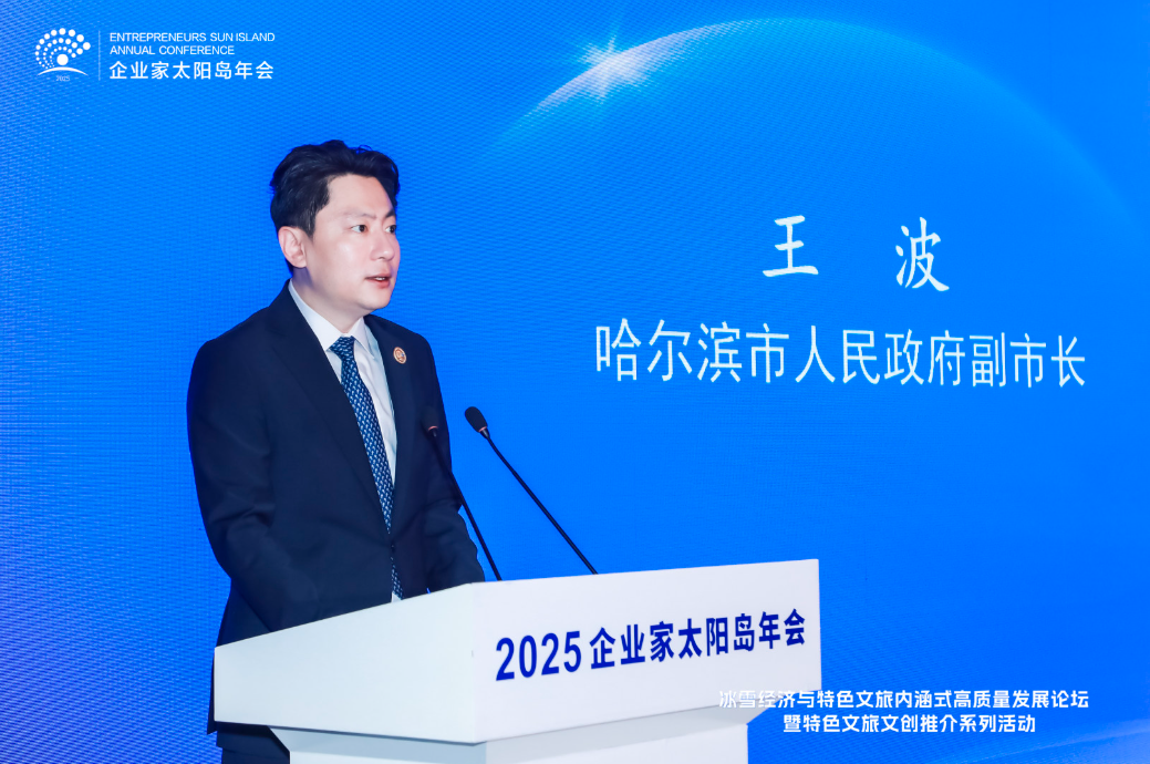 8月2日,2025太阳岛企业家年会“冰雪赋能发展 文旅创引未来”冰雪经济与特色文旅内涵式高质量发展论坛在哈尔滨举行。图为哈尔滨市人民政府副市长王波致辞