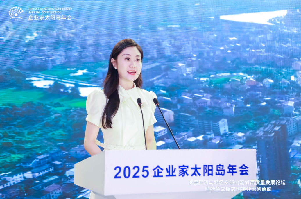 8月2日,2025太阳岛企业家年会“冰雪赋能发展 文旅创引未来”冰雪经济与特色文旅内涵式高质量发展论坛在哈尔滨举行。图为哈尔滨市文化广电和旅游局副局长李卓敏作哈尔滨市文旅城市推介