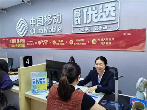 图为中国移动营业厅设置十五运会服务专席