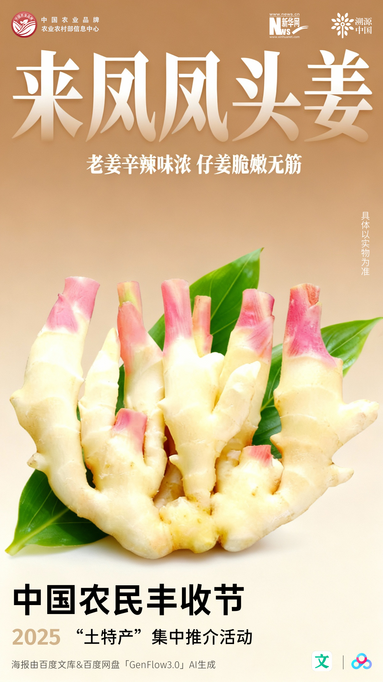 以凤凰降临栖息的美丽传说得名的来凤县,坐拥北纬30度黄金气候带,境内四季分明、土壤肥沃,尤其以来凤凤头姜盛名。产出的生姜表面光滑,姜柄如指,每柄有二三十头,尖端鲜红,略带紫色,块茎白嫩,紧连成扇形,姜顶上的点点红蒂,酷似凤凰的头部而得名“凤头姜”。