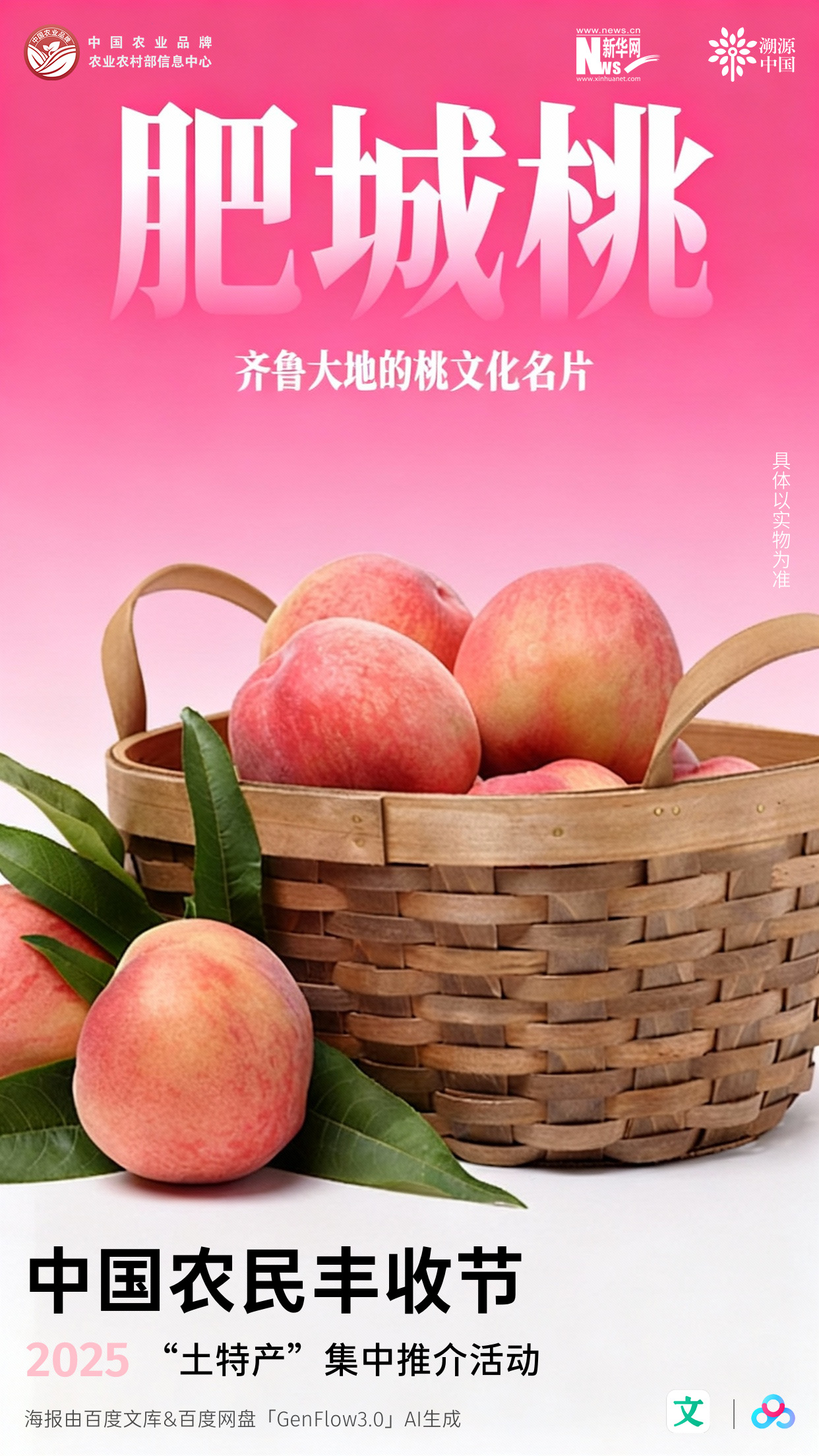 “天上蟠桃,人间肥桃”。肥城桃,中国四大传统名桃之一,栽培历史1100多年,因产于肥城而得名,又名佛桃、大桃,香气馥郁、果实肥大、外形美观、肉质细嫩、味美甘甜、营养丰富闻名于世,被誉为“群桃之冠”。肥城桃曾获国家名牌产品、国际博览会金奖、国家地理标志产品、中国地理标志名优产品奖、中国驰名商标等称号。