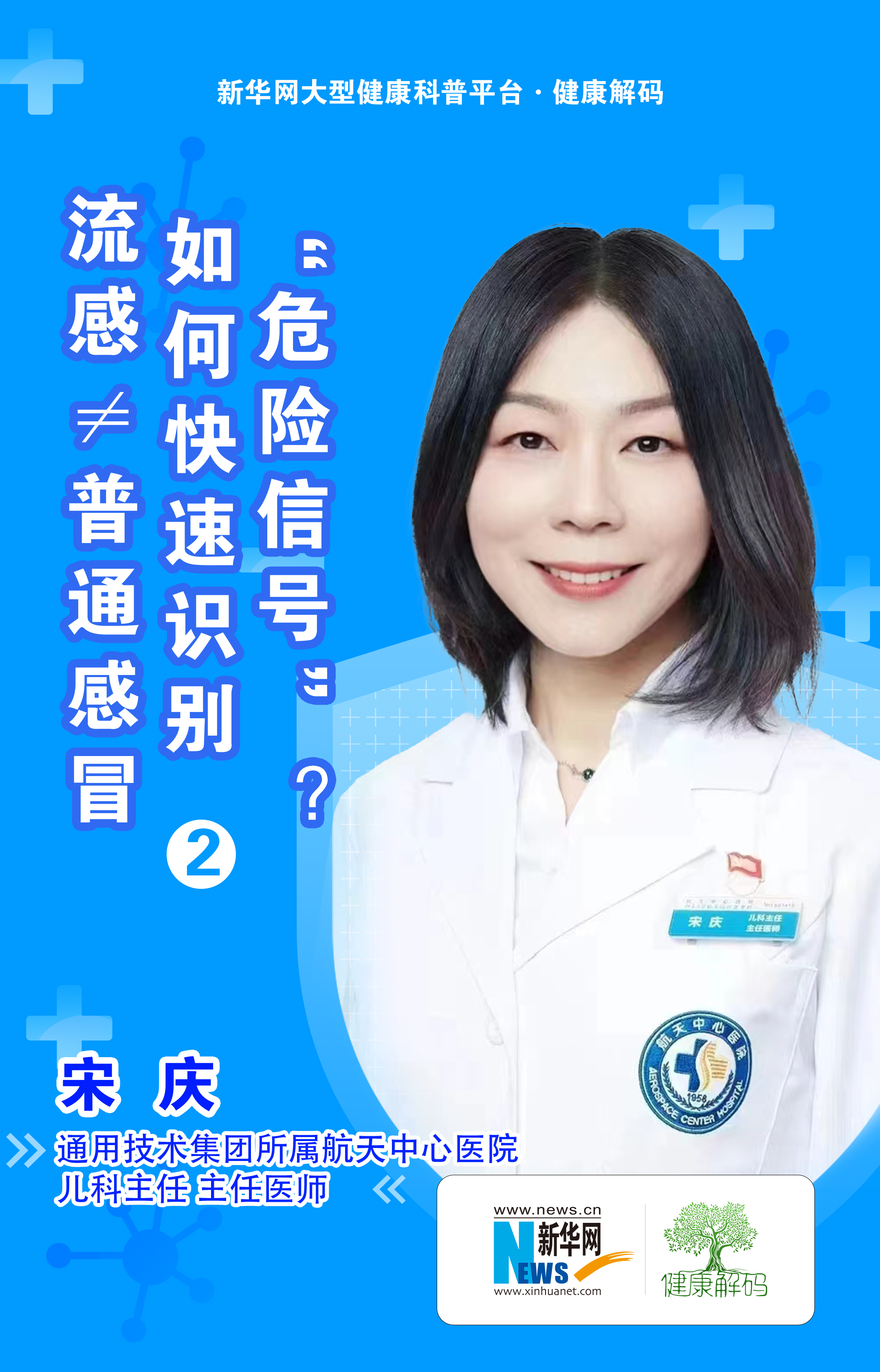 流感可能引发哪些严重并发症(如肺炎、心肌炎)?如何通过早期症状发现潜在风险?本集我们邀请了通用技术集团所属航天中心医院儿科主任、主任医师宋庆分享《流感≠普通感冒 如何快速识别“危险信号”?​​》。