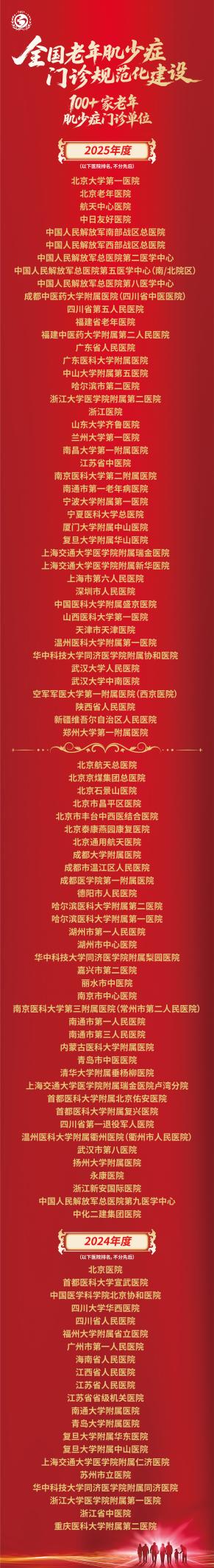 近日,“全国老年肌少症门诊规范化建设项目”2025年总结大会举行。项目由中国医药教育协会发起、在中华医学会老年医学分会学术支持下,取得阶段性成果:截至2025年底,全国已建成超过100家标准化老年肌少症门诊,标志着我国在应对这一重大老年综合征的防治体系建设上,迈入规模化、规范化发展的新阶段。