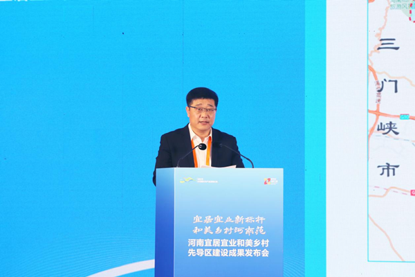 图为新安县委副书记王晓辉在河南宜居宜业和美乡村先导区建设成果发布会上发言