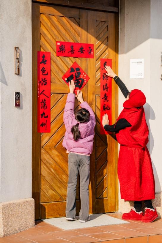 此外,敦煌当代美术馆与汉仪字库联合发布《瑞驰2026春联礼盒》,该礼盒特邀书法家许静创作马年主题春联,青年艺术家华成创作招财纳福版画图,每份联名礼盒均配有唯一专属编码,极具收藏价值。敦煌当代美术馆还与阿那亚社区展开联动合作,将春联作品送至社区13810户居民家中。春联作品从展厅出发,进入生活空间,真正从美术馆延伸至千家万户,与居民共度新春佳节。