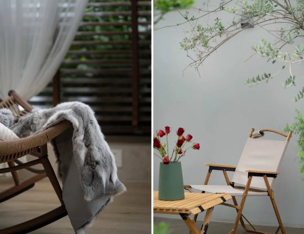 书房外是露台花园,工作时也可亲近自然,走入绿意当中,品茶赏花。