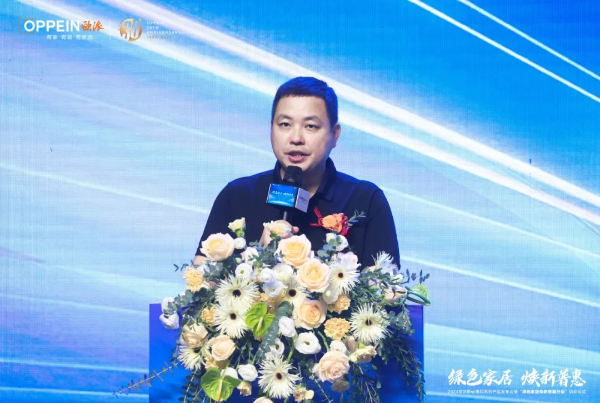中国建筑材料流通协会会长秦占学向欧派授予“绿色家居焕新普惠行动推荐品牌”