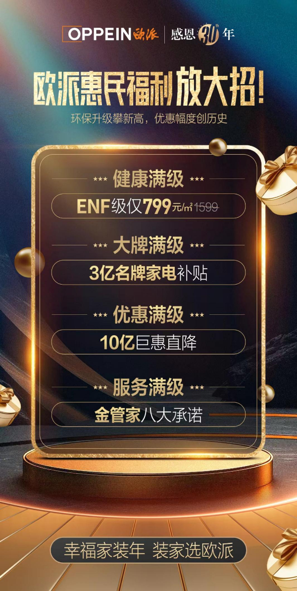 在5月15日欧派三十周年发布会上,董事长姚良松提出:“没有消费者口碑的利润都是一种利润幻觉!没有优质服务的大家居只是一场自娱自乐!”为了提供更优质、更贴心的服务,感恩三十年一路相伴同行的万千消费者,欧派于今年特别推出了黄金会员政策,并正式发布了金管家八大服务承诺,以及“799元/㎡ENF普惠风暴”、3亿家电补贴等多重优惠政策。这一系列举措不仅展现了欧派对大家居服务品质的执着追求,更旨在让广大中国家庭能够享受到更实惠、更便捷的家居服务。
