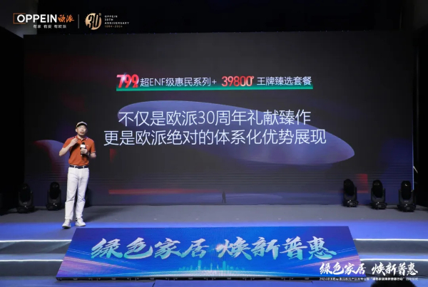 在当前促消费、以旧换新背景下,欧派积极响应国家号召,在6月14日于广州举办了备受瞩目的2024年ENF惠民系列产品发布会暨“绿色家居焕新普惠行动”启动仪式。发布会上,欧派宣布了十亿补贴政策,推出欧派ENF惠民系列,掀起799元/㎡ENF普惠风暴。此次发布会以ENF惠民系列产品为核心,进行了至臻普惠再升级,强势发布了欧派39800王牌臻选套餐。套餐含7米抗菌橱柜+厨电百货配件+20㎡欧派ENF级全屋定制+芝华仕全屋家具,至臻生活,一步到位,一站配齐,满足了广大消费者对环保、健康的普遍性需求。