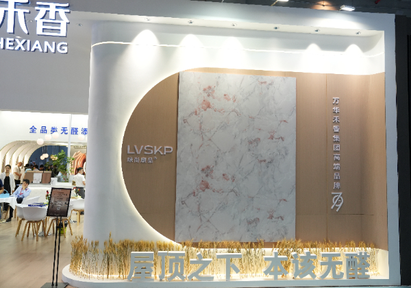 今年建博会上,万华禾香集团带来了全新的板材新品——“芮铂”高端精板系列产品,并为此设立单独展位。