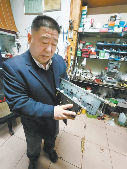 黄永强给出了一条简单易操作的选锁妙招,“电子门锁,连锁体带面板在一起,如果超过七斤半,至少在材料上有保证。”在他的店面里,那些被拆解下来、易损坏、安全性差的门锁,多数都材料差、重量轻。