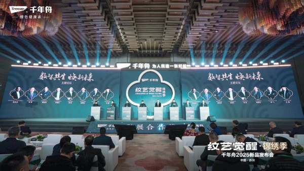 继去年启动首届花色及应用设计大赛后,为继续将传统文化及东方美学的价值理念传递给更多年轻群体,引领行业迈向设计创新的新高度。千年舟“纹艺觉醒・舟行东方”第二届花色及应用设计大赛也在当天正式启幕,将吸引更多设计师参与。