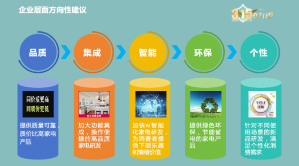 一、企业层面。建议以满足多样化、个性化、品质化消费需求为基础,加大供给侧创新,将产品研发重心向质量高度可靠性、安全性、智能化和功能集成化转移。