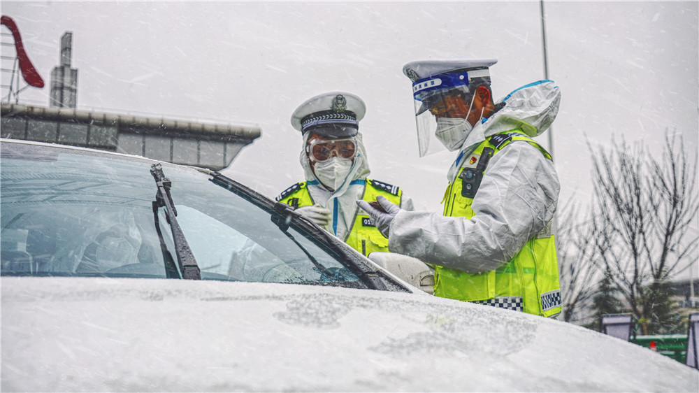 12月25日清晨6时30分,西安高新开发区丈八收费站出口处,一位鬓角斑白的民警站在漫天风雪中执勤。他就是西安市公安局交警支队车管处东所民警朱永强,还有一个月就年满60岁,到了退休年龄。在这场看不见的战斗中,不论年龄,不分职业,西安公安迅速建立全员抗疫的防线,没有一个人退缩。