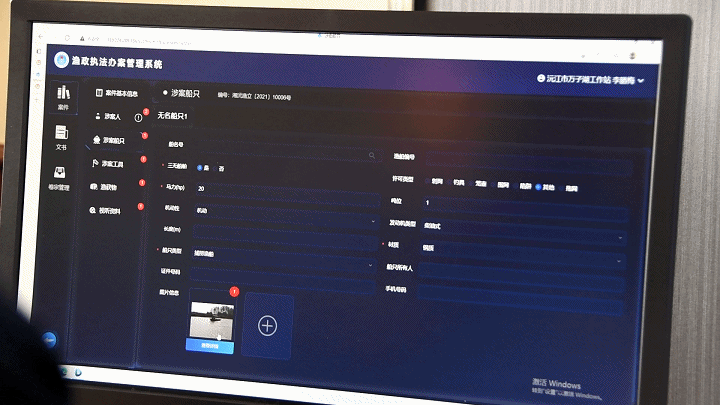 图为执法人员展示被“智慧渔政”系统捕捉的可疑船只。(采访对象供图)