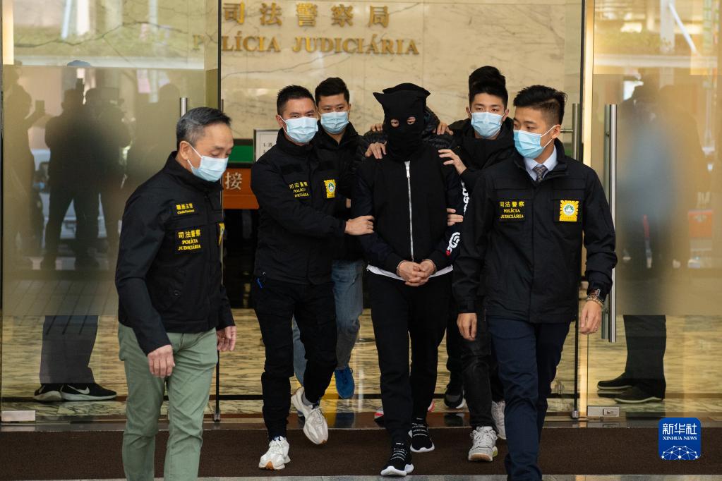 1月30日,澳门特区政府司法警察局人员押送涉案澳门男子。新华社记者 张金加 摄
