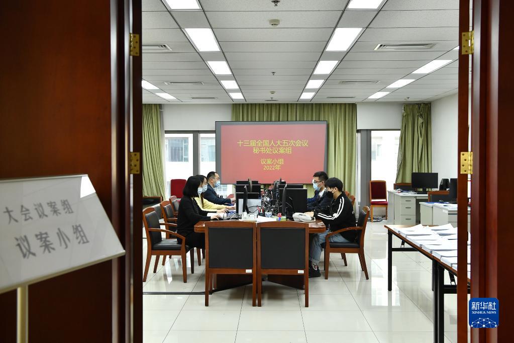 3月9日,十三届全国人大五次会议秘书处议案组议案小组在工作中。