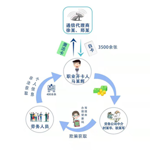 2019年12月,浙江杭州某科技公司负责人徐某、浙江诸暨某通信营业网点代理商郑某合谋在杭州、湖州、诸暨等地非法从事手机卡“养卡”活动。即先由郑某利用担任手机卡代理商的便利,申领未实名验证的手机卡(又称“白卡”),再以每张卡35元至40元的价格交由职业开卡人马某辉;马某辉通过在江苏省的劳务公司员工时某华、耿某军等人,以办理“健康码”、核实健康信息等为由,非法采集劳务公司务工人员身份证信息及人脸识别信息,对“白卡”进行注册和实名认证。