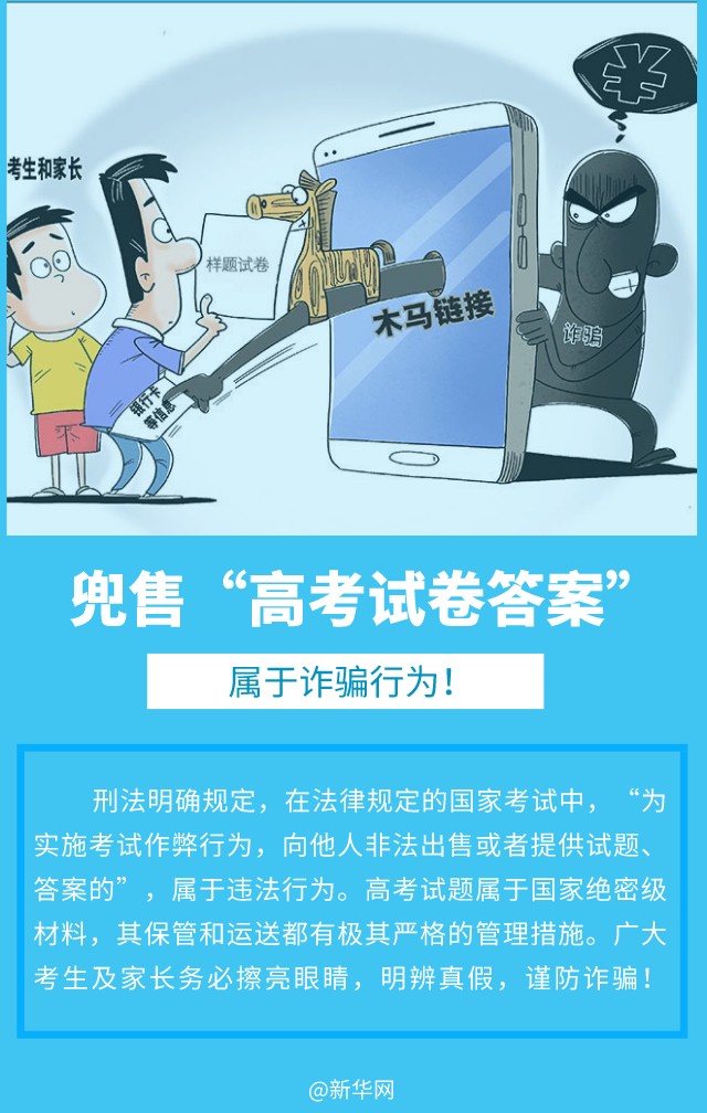 2022年高考即将到来,有些不良机构或不法分子妄图借高考之机牟取不法利益。近年来,各地公安机关会同教育部门,对各类涉考违法犯罪活动持续保持高压严打态势,本期法治课代表提醒广大考生和家长要增强法律意识,诚信考试,切勿心存侥幸。
