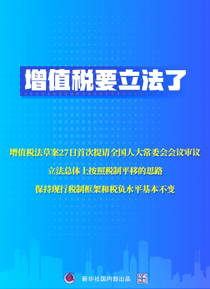 增值税法草案提请十三届全国人大常委会第三十八次会议首次审议