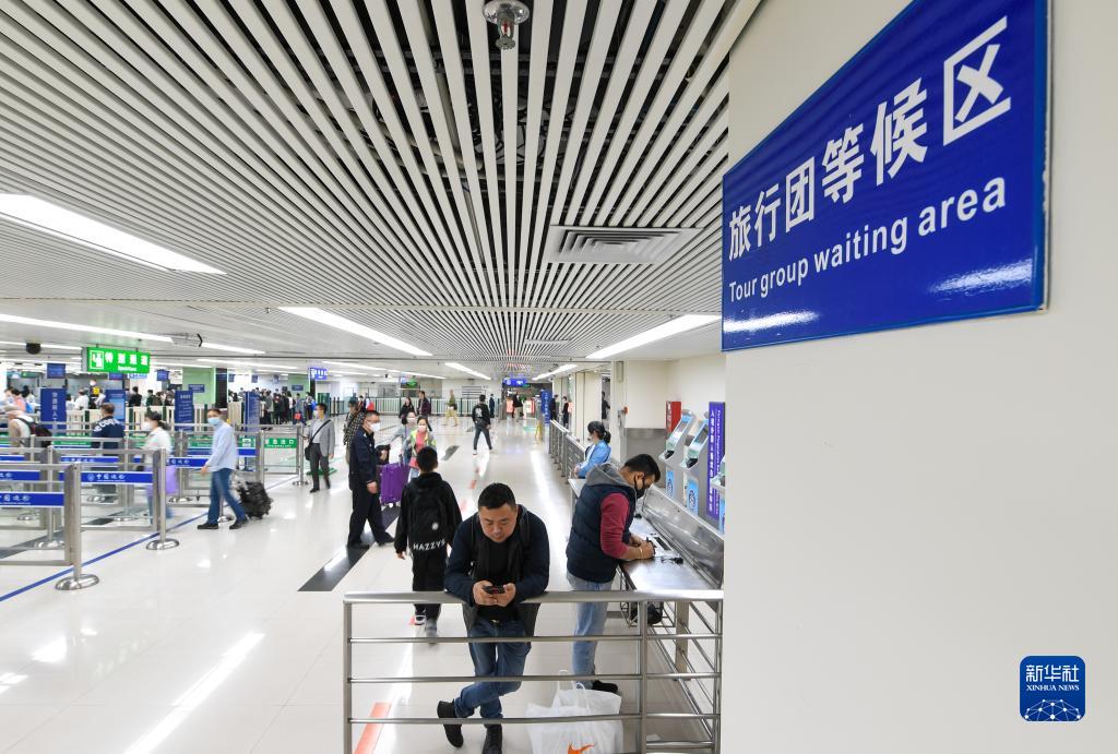 3月15日,外国旅客在深圳罗湖口岸入境检查大厅候检通关。新华社记者毛思倩摄