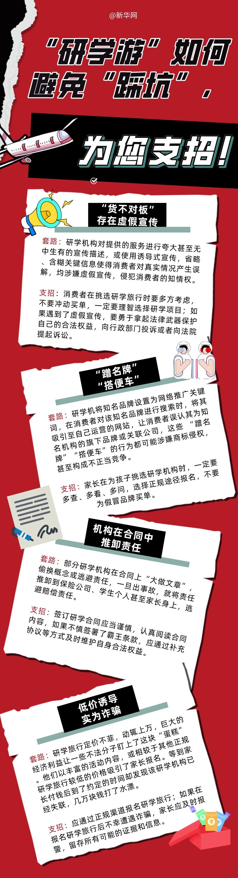 暑假中研学游市场进入旺季。然而,机构良莠不齐,使得一些消费者直言“踩坑”。如何在“研学热”中避免“踩坑”,保障合法权益?本期法治课代表为您支招!