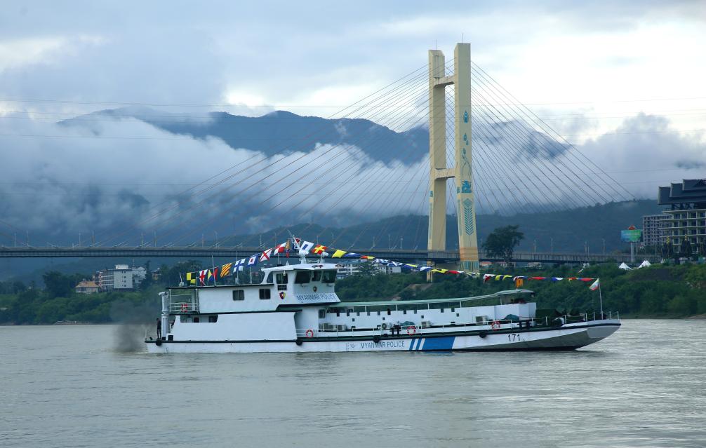 联合巡逻执法编队从景哈码头启航,图为参加此次联合巡逻执法的缅方171执法艇。 云南省公安厅新闻办供图