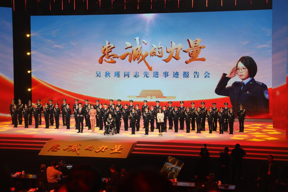2023年11月28日的吴秋瑾同志先进事迹报告会现场。新华社记者 曹力 摄