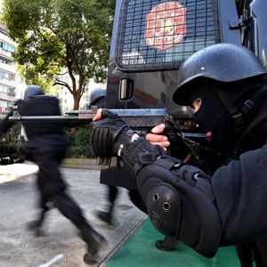2017年11月24日,上海虹口公安分局特警支队“虹剑”突击队队员练习迅速出击。