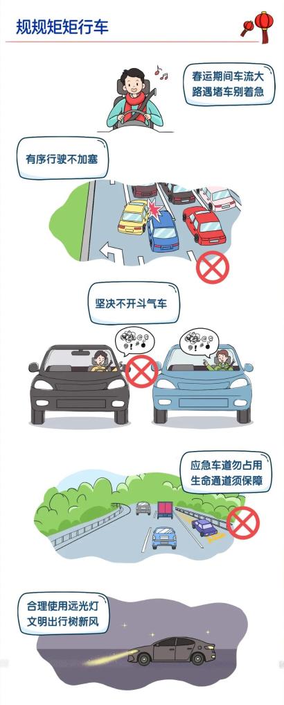 2024年春运将于1月26日开启。预计今年春运期间高速公路及普通国省干线非营业性小客车人员出行量约有72亿人次,自驾出行占全社会人员出行量的比例将突破8成。@自驾的朋友,这里有一份来自交通运输部综合运输春运工作专班的春运出行安全温馨提示。关注这份提示,安全顺畅出行!