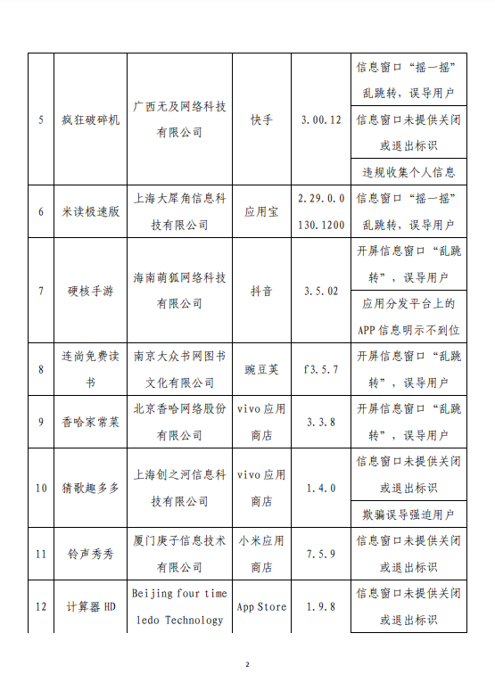 附件:工业和信息化部通报存在问题的APP(SDK)名单