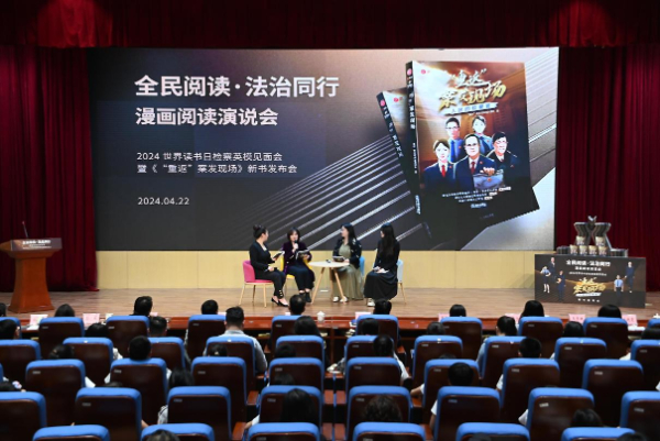 新华网北京4月23日电(记者 卢俊宇)22日,在第29个“世界读书日”到来之际,“全民阅读·法治同行”漫画阅读演说会——2024世界读书日检察英模见面会暨《“重返”案发现场·人民的检察官》漫画新书发布会在京举行。新时代检察英模王勇、施净岚、梅玫、徐贺现场讲述漫画背后的真实办案故事,与24名小学生面对面交流,并现场回答记者提问。