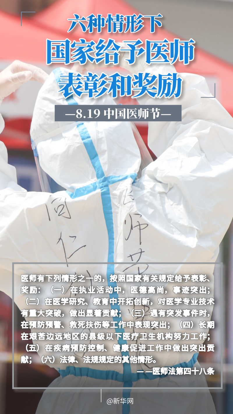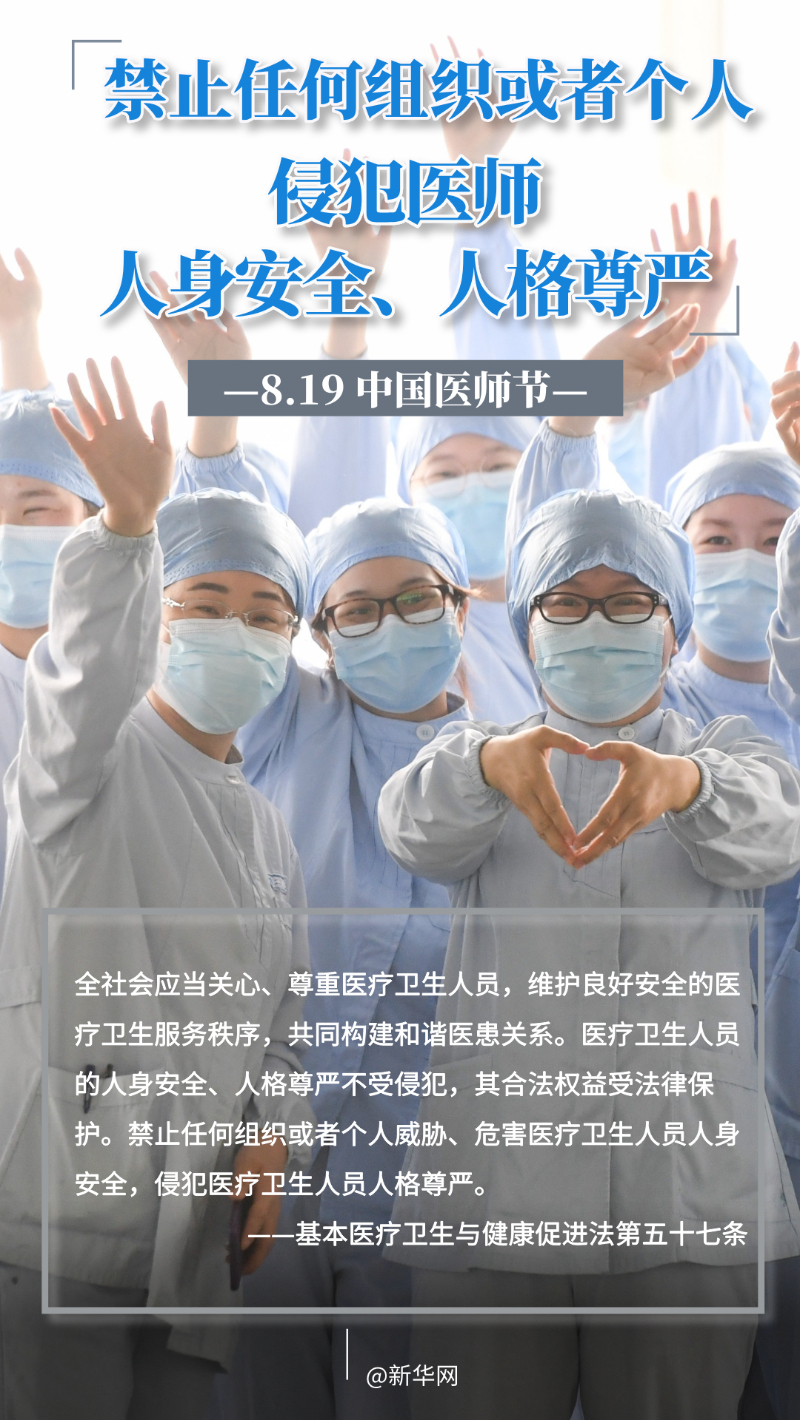 每年8月19日为“中国医师节”。国家设立“中国医师节”,旨在全面保障医师的合法权益,充分体现对医师的关心关爱,对于在全社会营造尊医重卫的良好氛围具有重要意义。