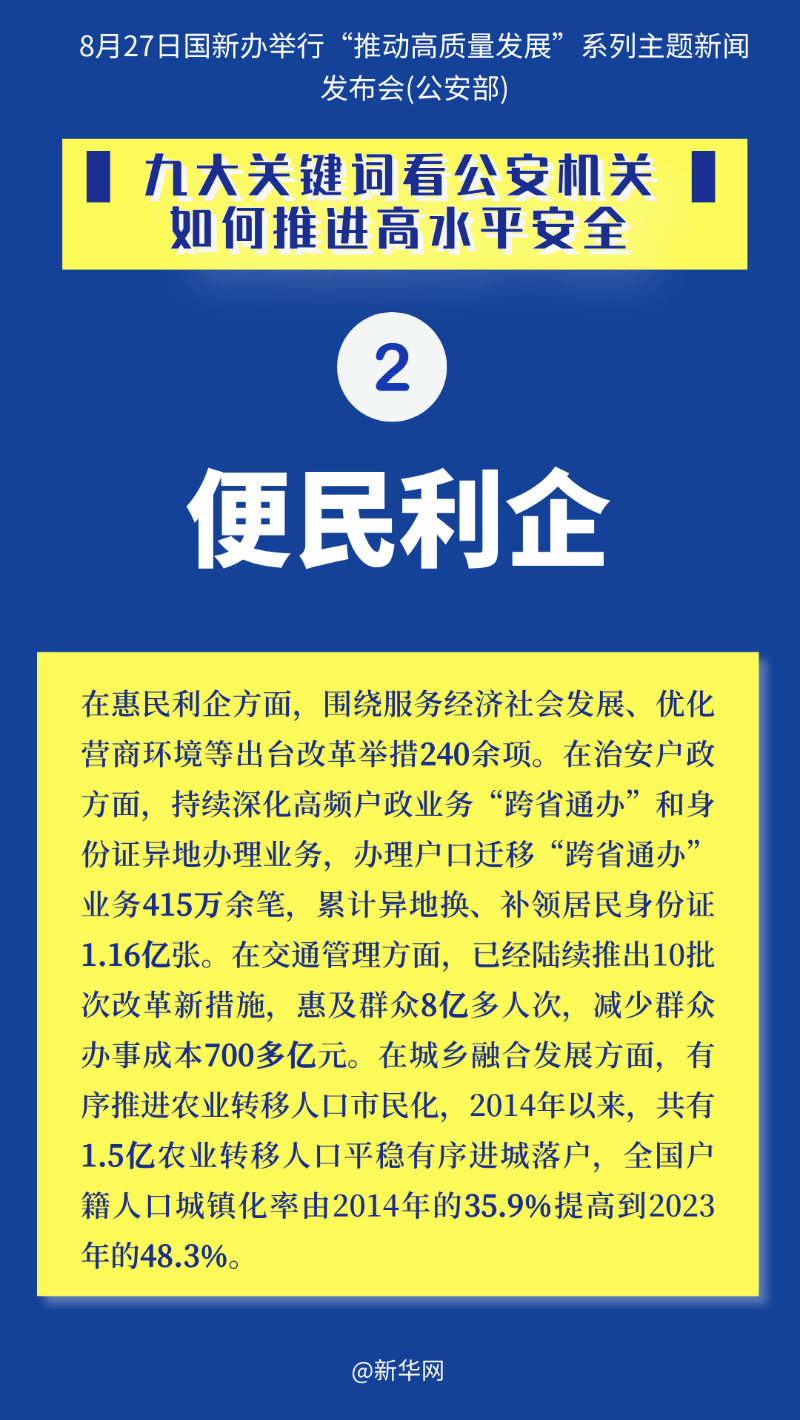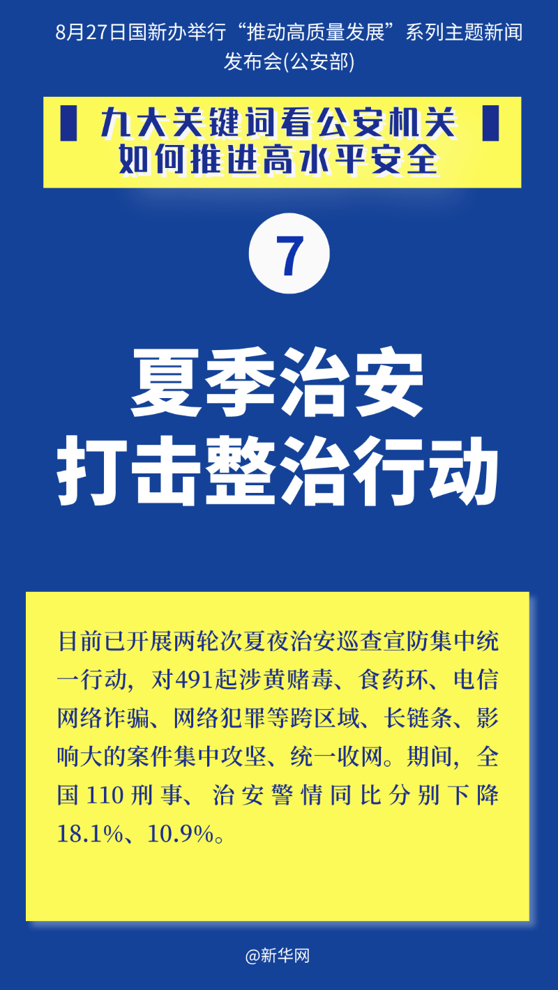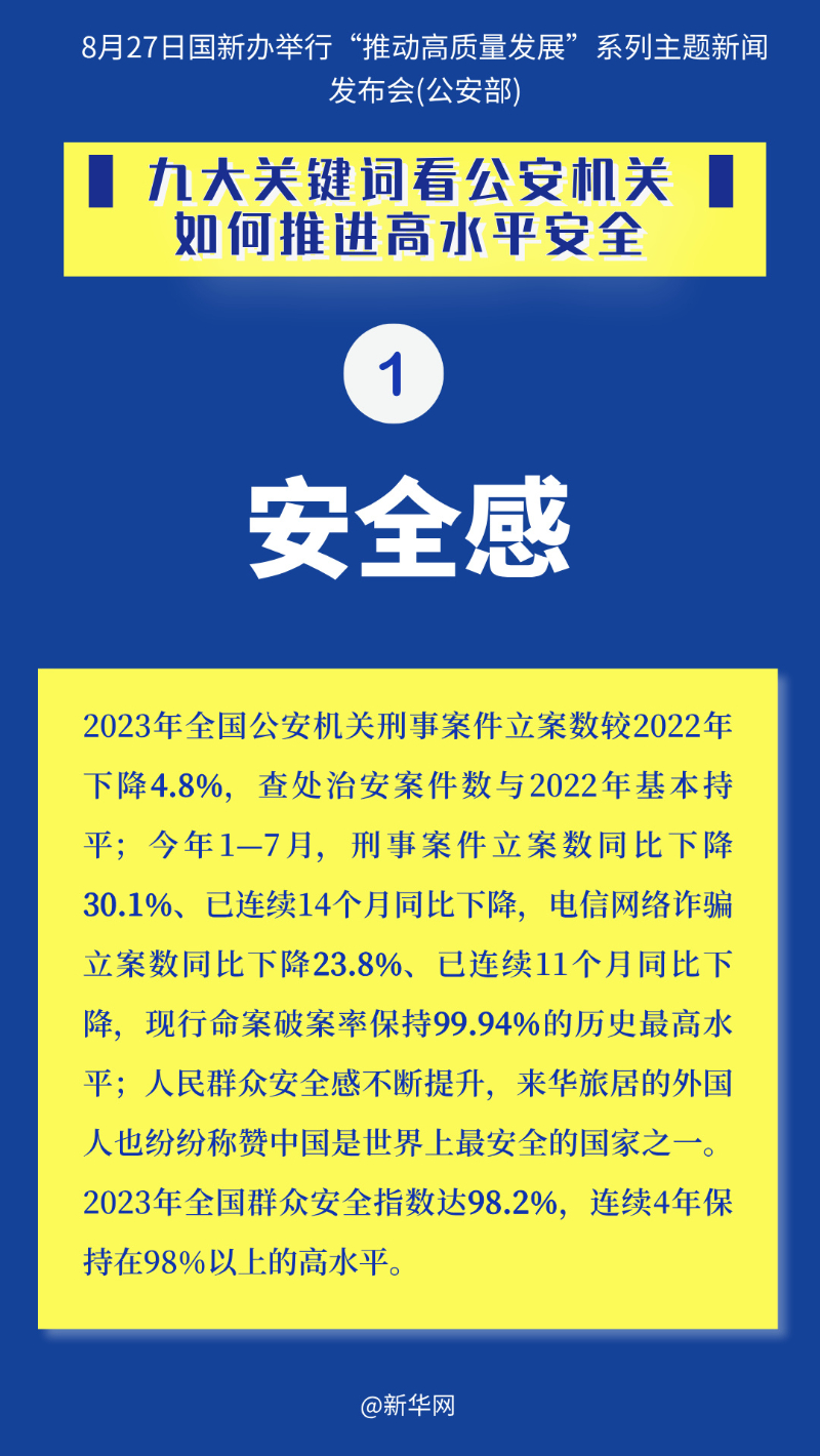 国新办27日举行“推动高质量发展”系列主题新闻发布会,公安部相关负责人出席介绍情况并答记者问。一起来通过九大关键词看公安机关如何推进高水平安全。