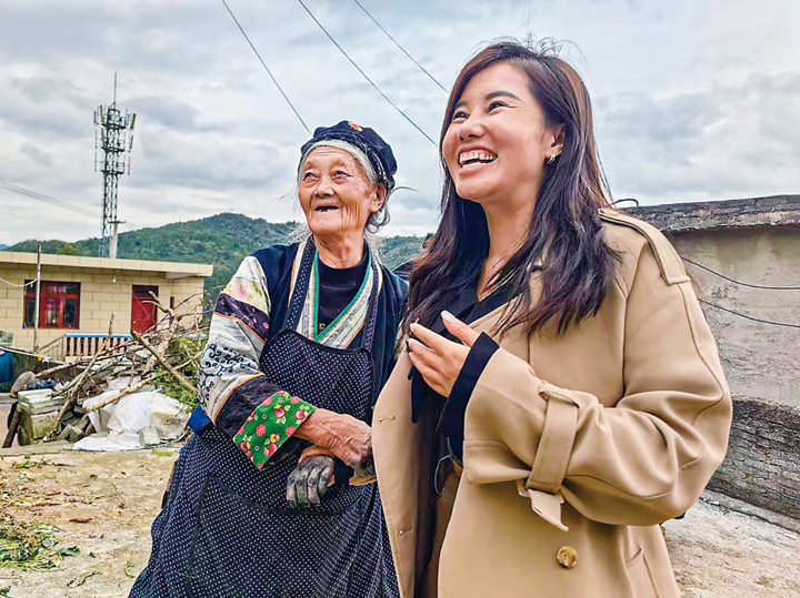 杨妞花介绍她小时候记忆中的大山。新华社记者 胡星摄