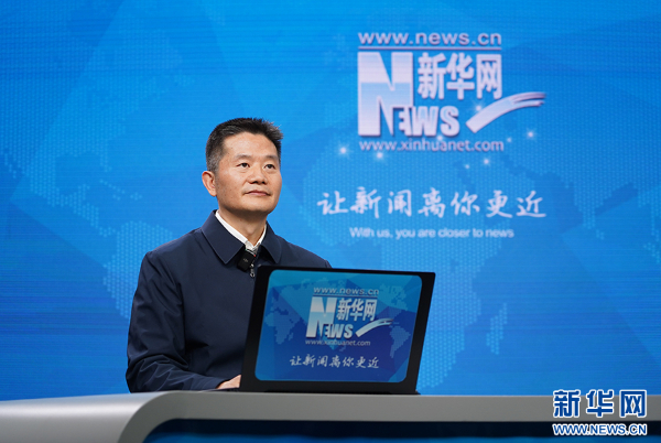 重庆市委社会工作部副部长、市信访办主任钱永培做客新华网访谈。新华网 彭浩然 摄