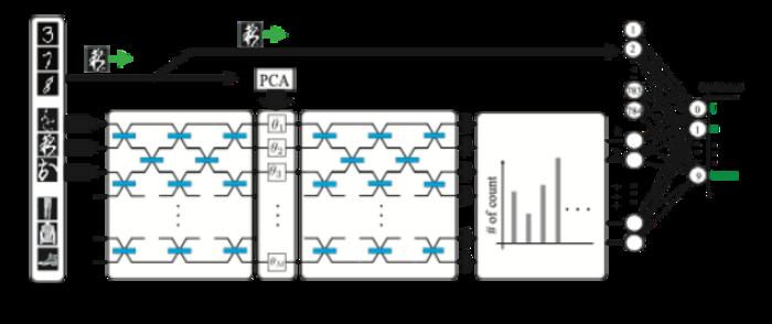 在他们的模拟系统中,图像数据首先使用一种称为主成分分析 (PCA) 的过程进行简化,该过程在保留关键特征的同时减少了信息量。系统会生成一个复杂的光子态,并将数据编码到该光子态上,然后在量子库中进行处理——光子之间的干涉会产生用于图像识别的丰富而复杂的模式。该系统仅需要在最后阶段(一个简单的线性分类器)进行训练,从而使整体方法既高效又能有效地进行准确的图像识别。图片来源:本研究第一作者、日本冲绳科学技术大学院大学量子信息科学与技术部门成员樱井昭忠/日本冲绳科学技术大学院大学