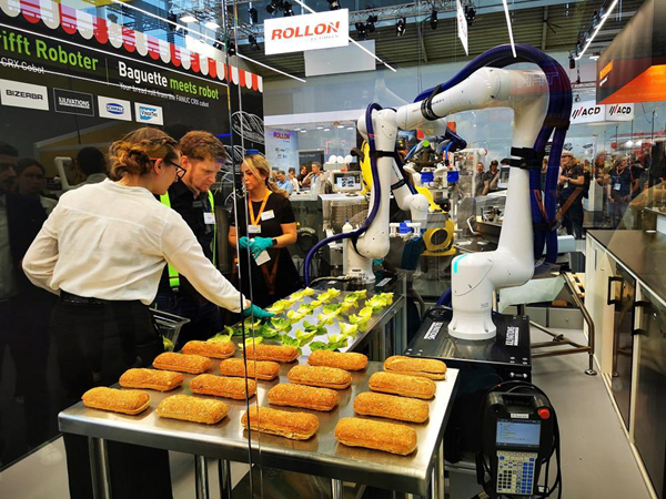 机器人制造商发那科(FANUC)在2025年慕尼黑自动化展上展示机器人做汉堡包。科技日报驻德国记者 李山 摄
