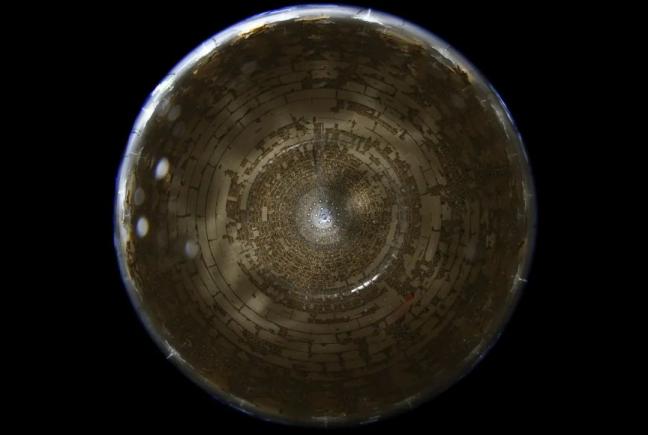 从江门中微子实验球底拍摄的中心探测器有机玻璃球(2024年11月22日摄)。新华社记者 金立旺 摄