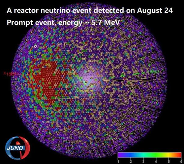 这是8月24日江门中微子实验探测到的一个反应堆中微子事例示意图。新华社发(JUNO合作组供图)